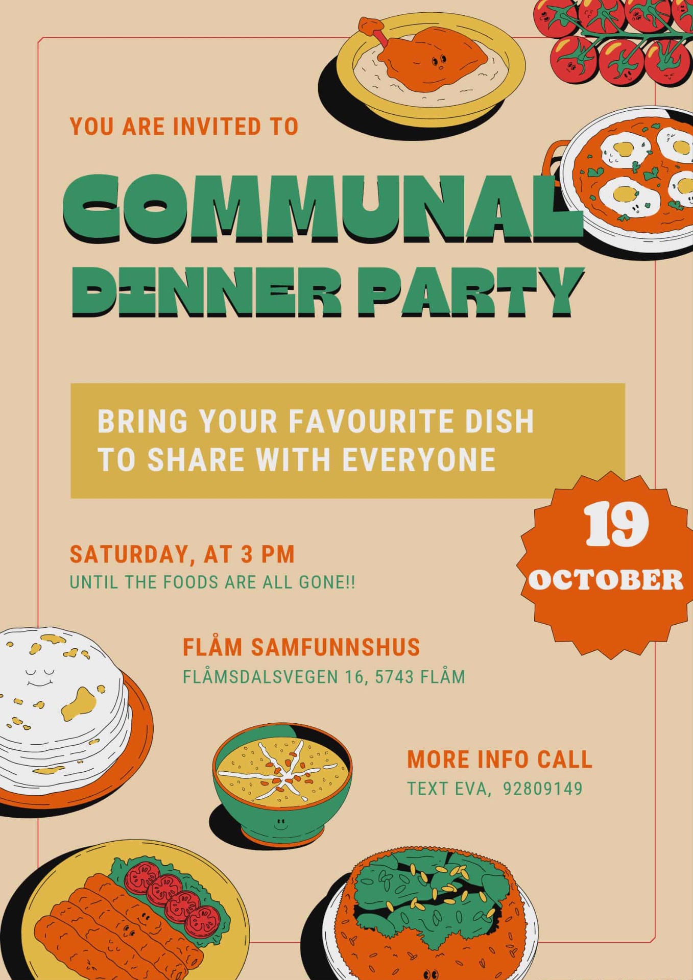 You are warmly invited to a Communal Dinner Party at Flåm Community House!